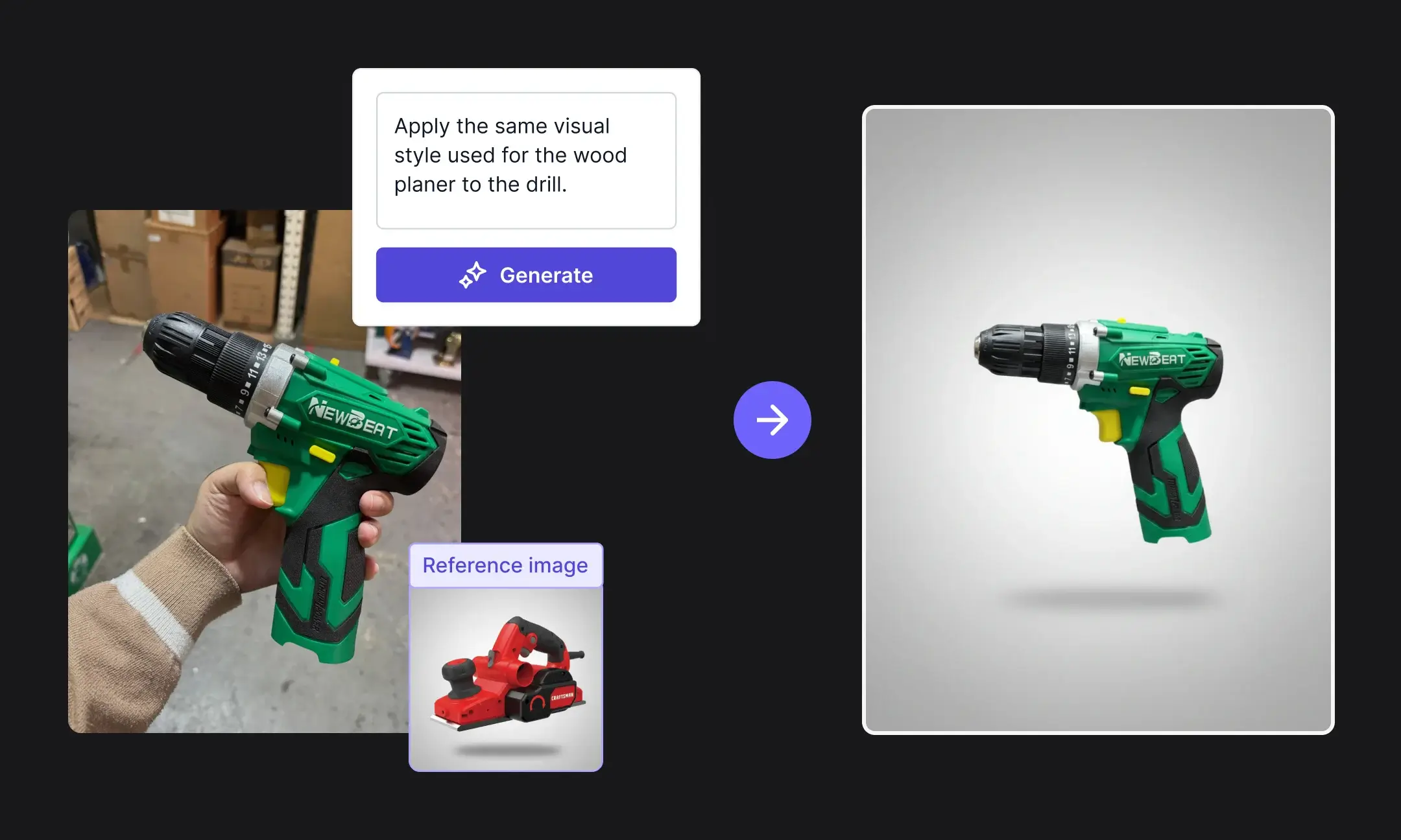 AI is also smart enough to read the product and apply the right edits based on the shape, color, and details of the item. And not just based on very specific instructions.