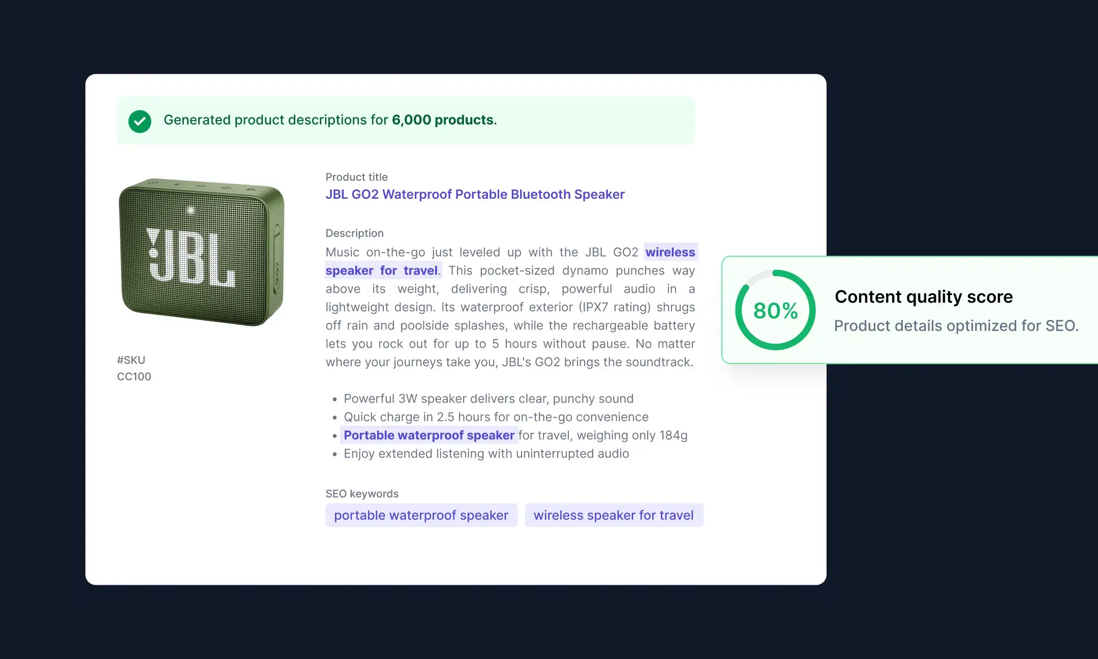 Launch new SKUs sooner with complete, accurate attributes from day one. AI handles cleanup, extraction, and mapping so products move smoothly through your workflow and reach every sales channel on schedule.